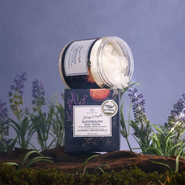 Den nattliga skönhetsrutinen skapar en spa-liknande upplevelse i hemmets lugna vrå. Den ekologiska kroppsoljan ger en avslappnande njutning för både kropp och sinne. Kompositionen av naturligt extraherade eteriska oljor från små, ekologiska producenter lindrar spänningar och underlättar insomning. Den ekologiska lavendel- och grapefruktskrubben för kroppen lugnar dina sinnen och fräschar upp kroppen. Havssaltkristallerna stimulerar blodcirkulationen och hjälper till att bekämpa celluliter vid regelbunden användning. En verklig reningsritual som ger en djup känsla av välbefinnande.